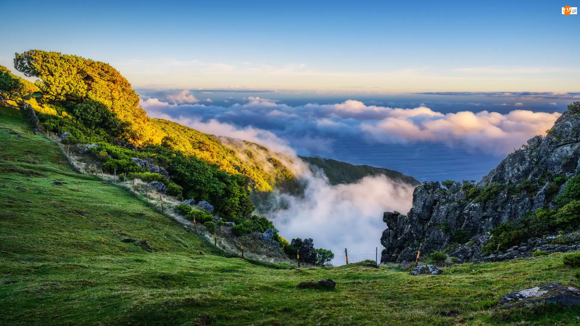 Mgła, Wschód słońca, Góry, Portugalia, Morze, Madera