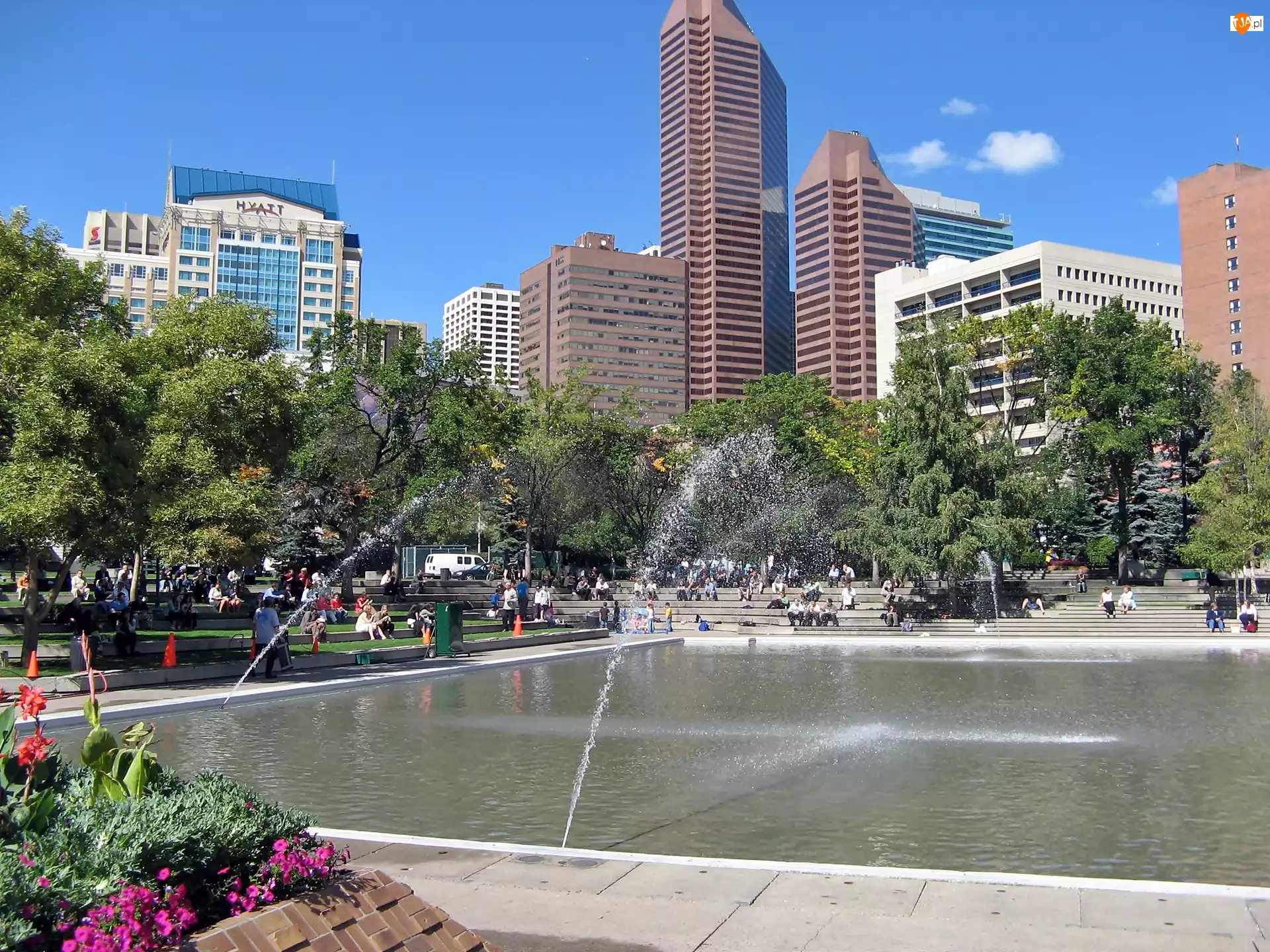 Miasta, Sadzawka, Calgary, Fontanny, Panorama, Park