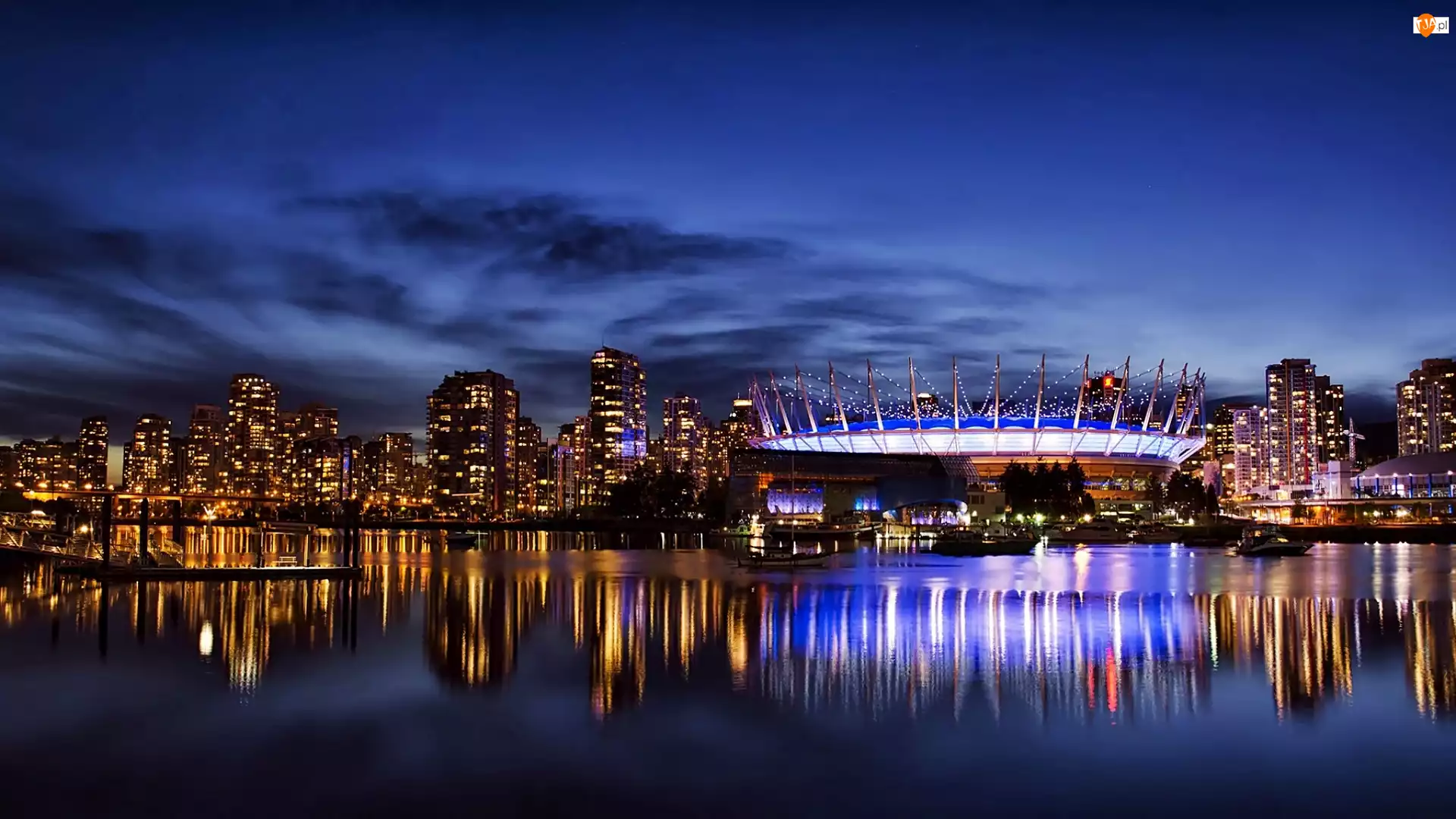Miasta, Vancouver, Chmur, Drapacze, Nocą, Stadion