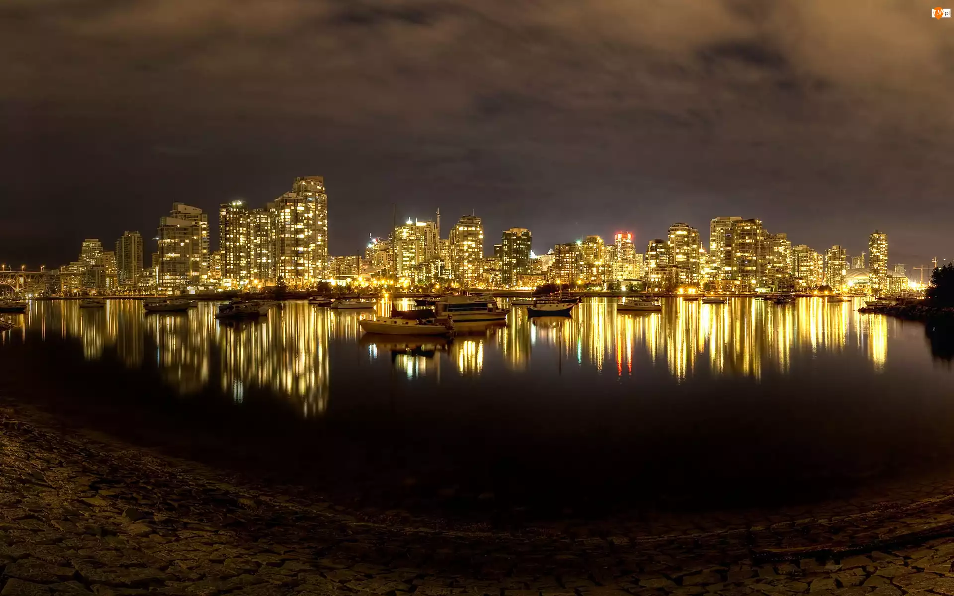 Drapacze, Morze, Dubaj, Jachty, Nocą, Chmur