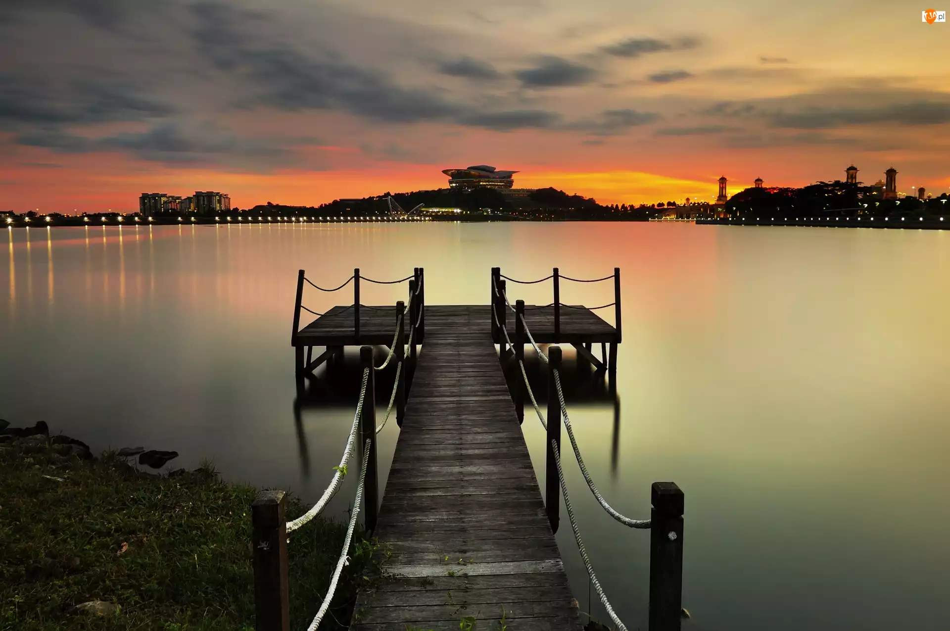 Miasto, Rzeka, Zachód, Pomost, Słońca