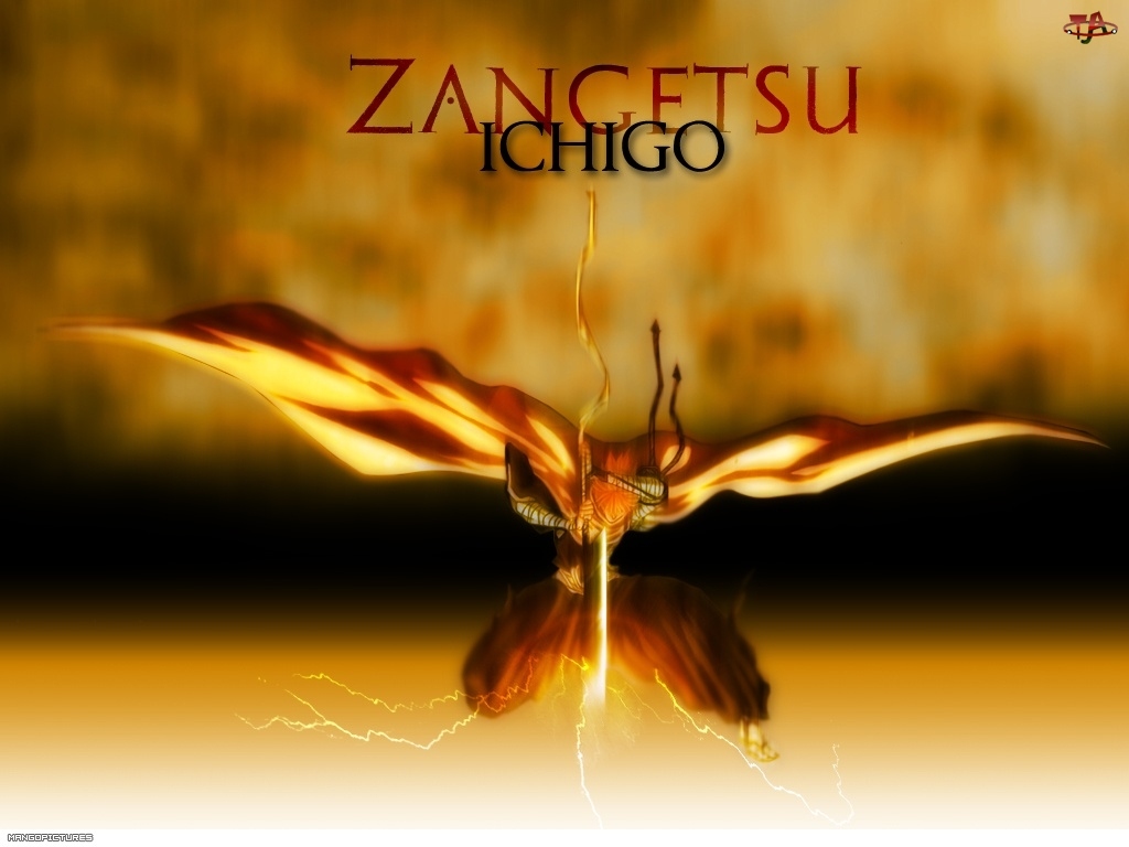 miecz, Bleach, złoto, napisy, postać