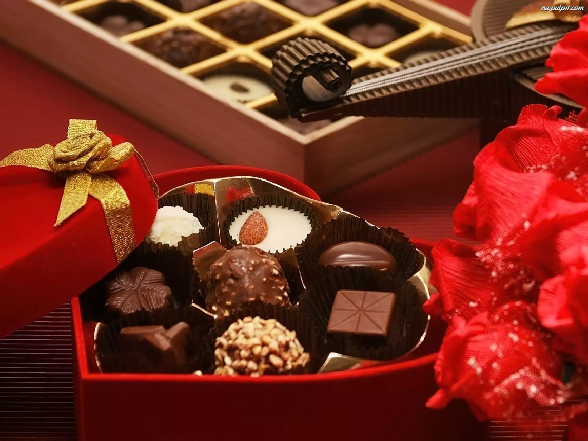 Miłość, Pralinki, Czerwone, Bombonierka, Serduszko