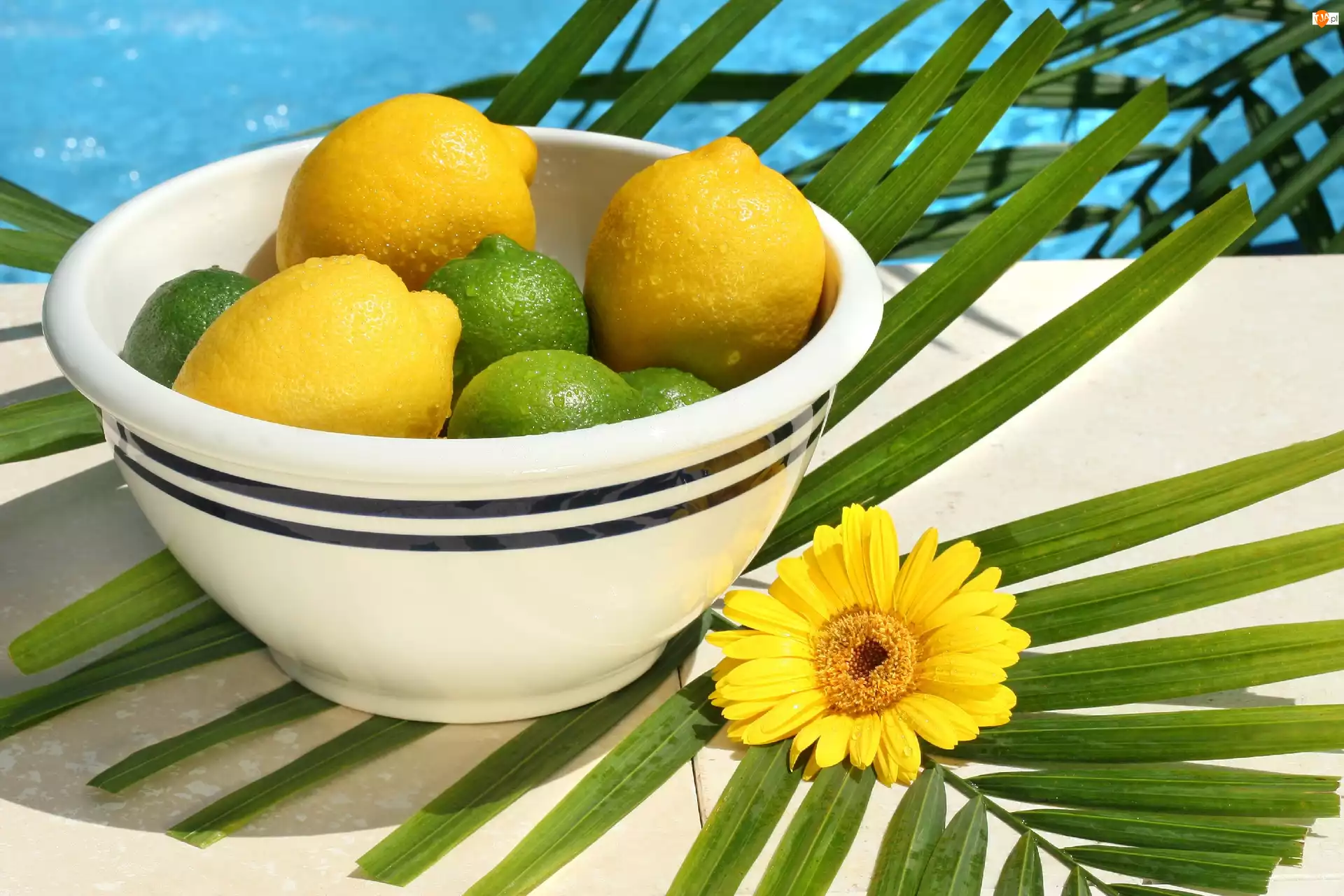Miseczka, Kompozycja, Limonki, Cytryny, Kwiat