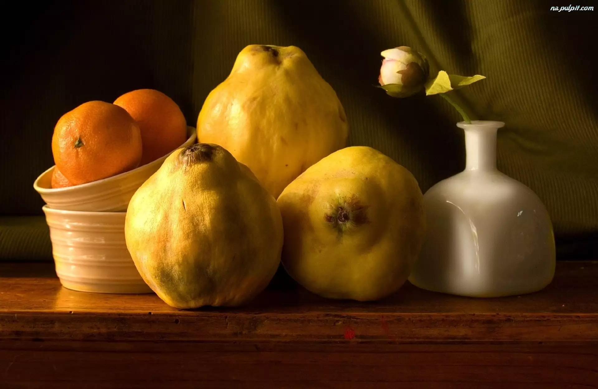 Miseczki, Pigwy, Wazonik, Mandarynki, Kwiat