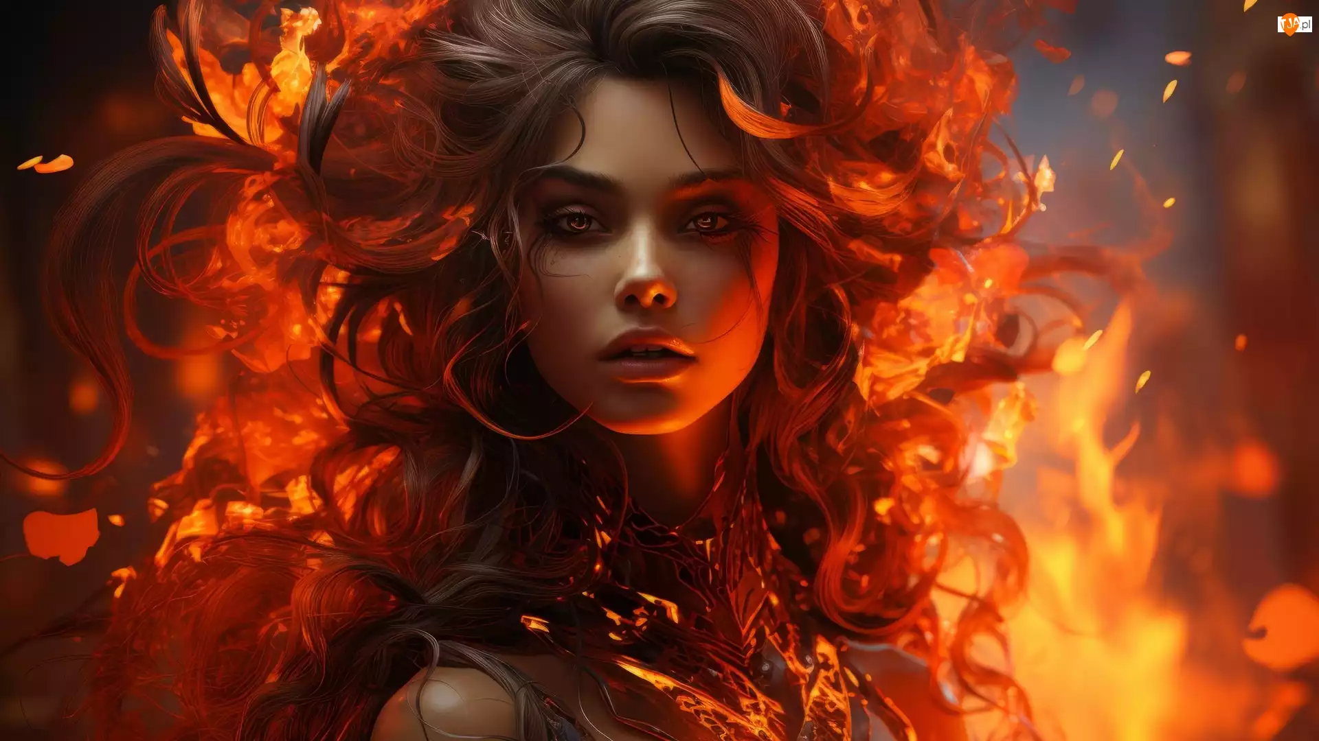 Młoda kobieta z włosami w płomieniach