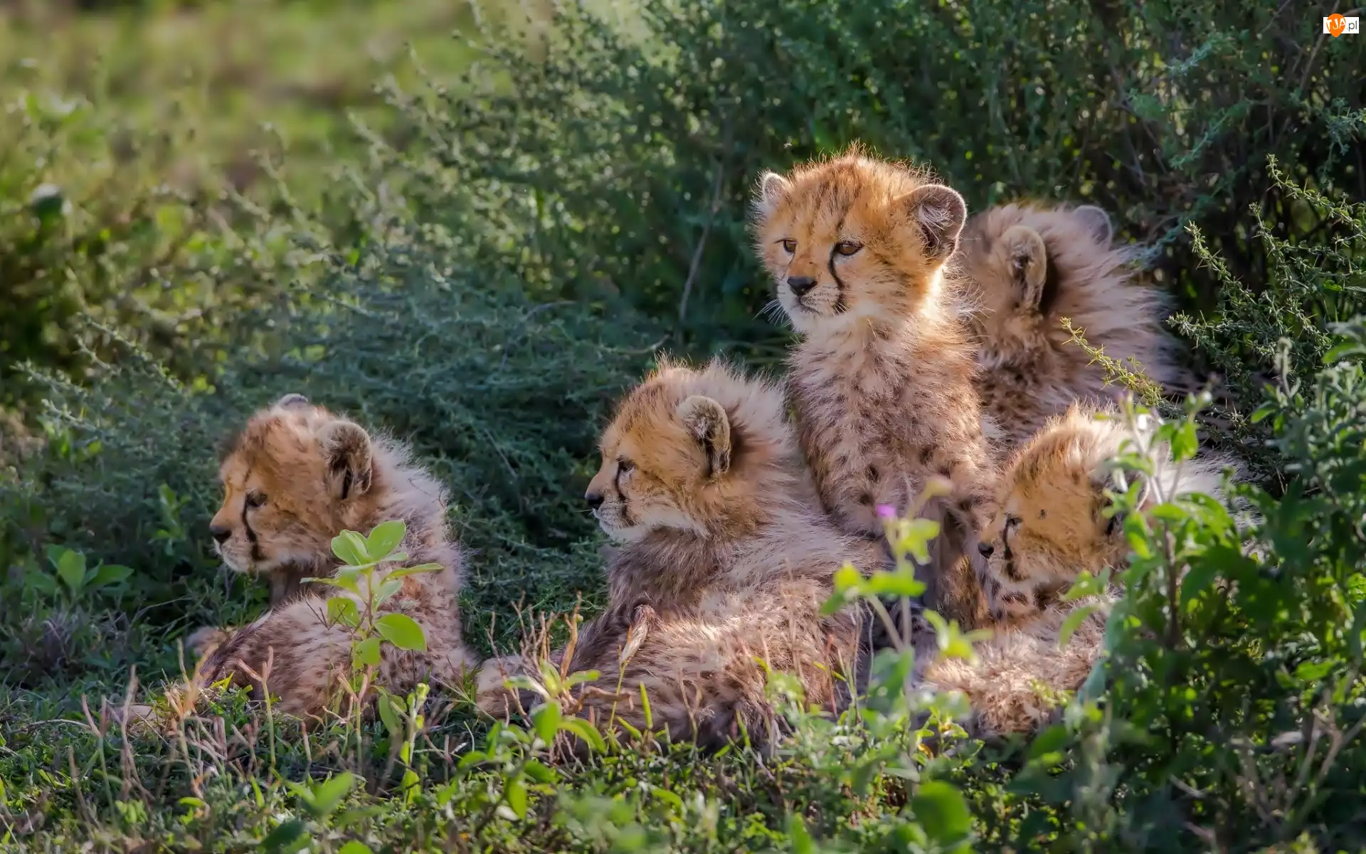 Młode, Trawa, Gepardy, Krzewy