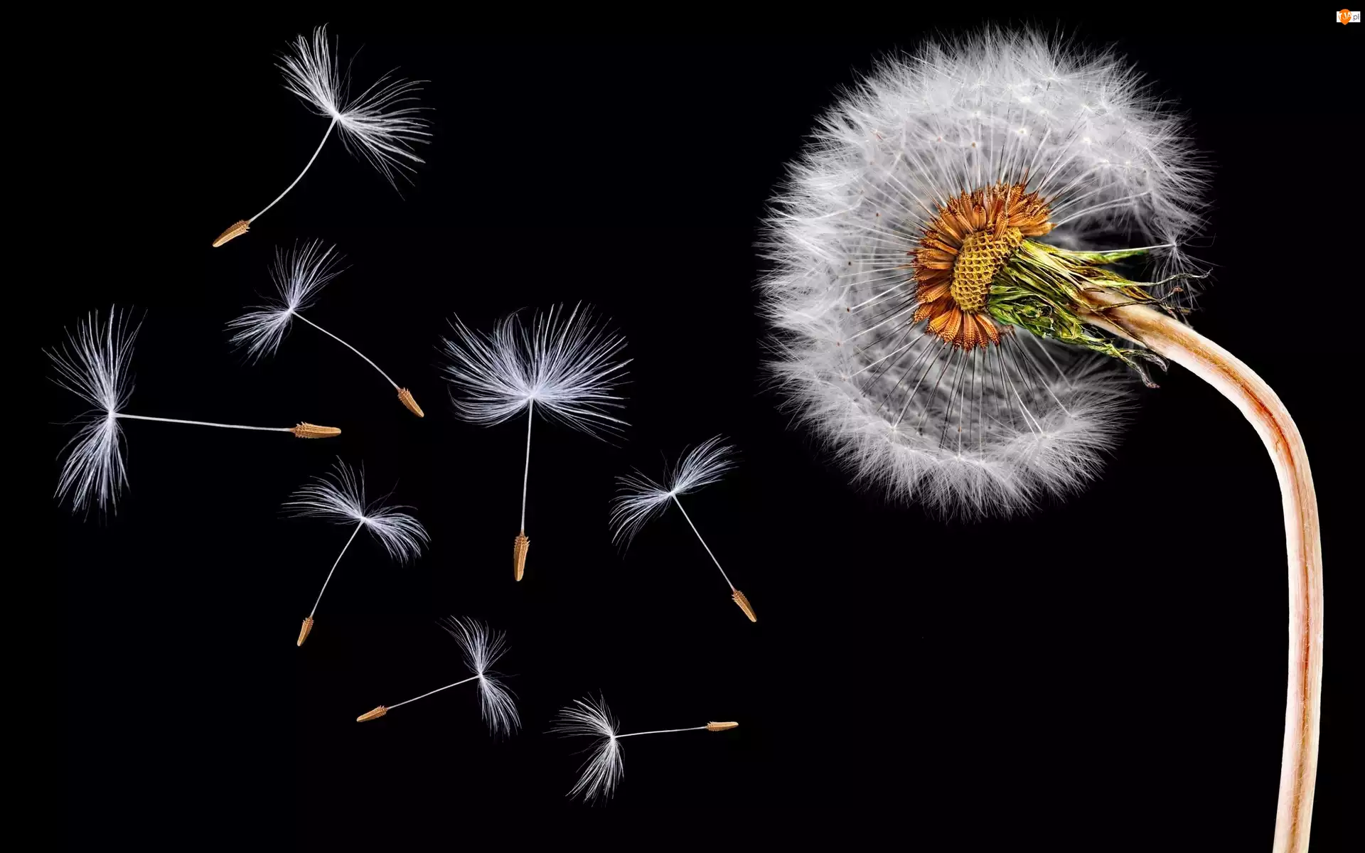 Mniszek pospolity, Dmuchawce, Makro, Czarne tło