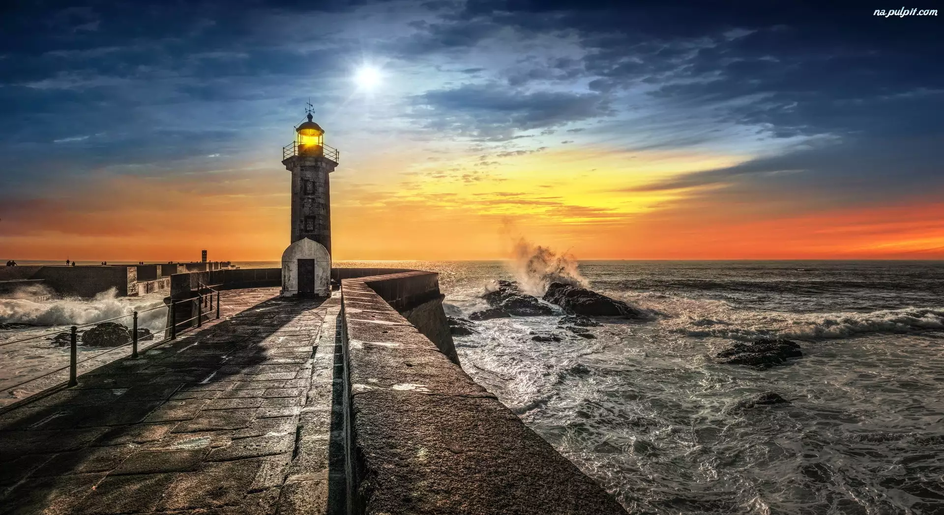 Morska, Morze, Słońca, Zachód, Latarnia