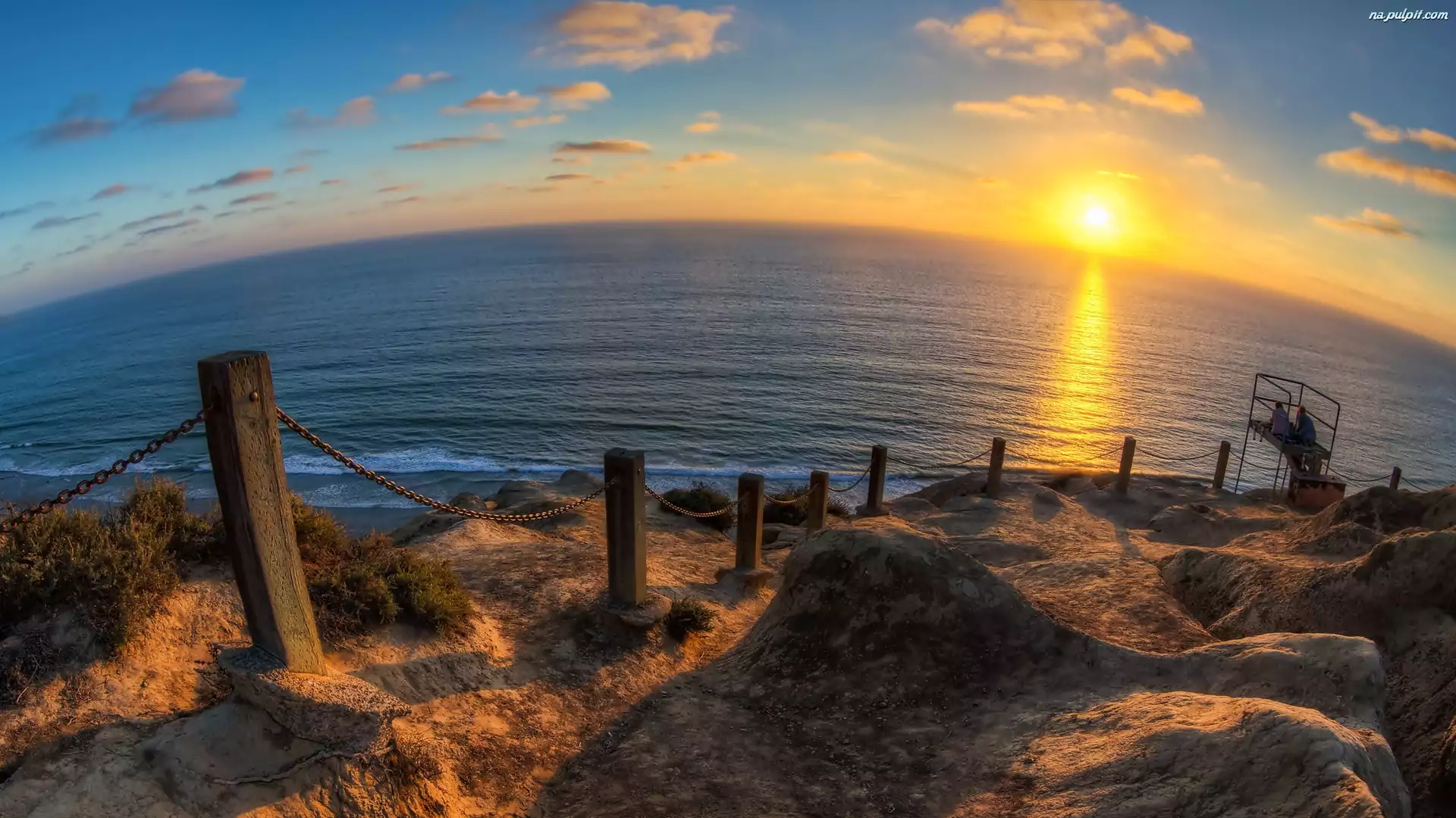 Morze, Betonowe, Wschód, Słupki, Słońca, Brzeg