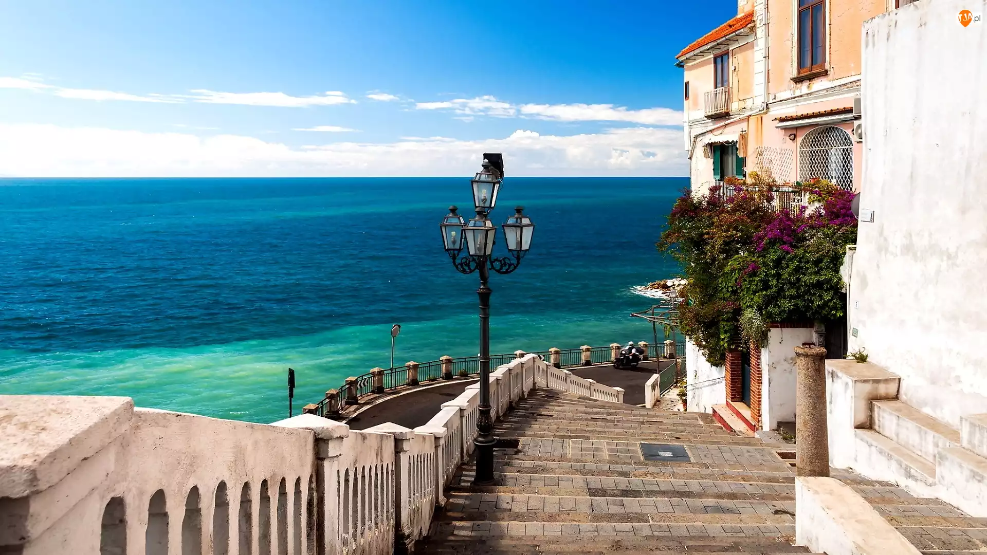 Morze, Latarnia, Atrani, Schody, Włochy, Domy
