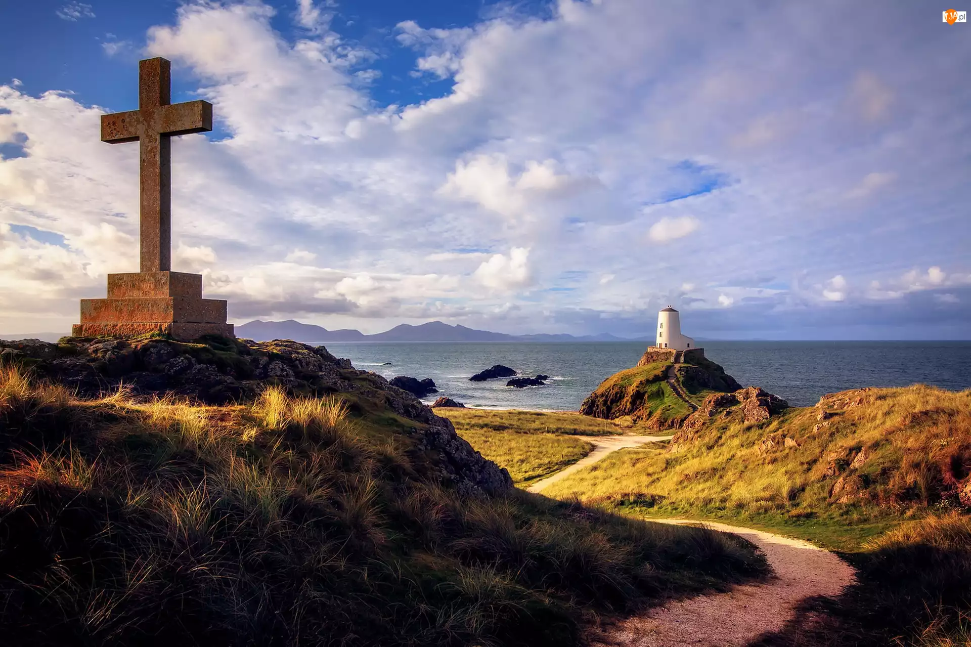 Morze, Llanddwyn Anglesey, Krzyż, Walia, Latarnia