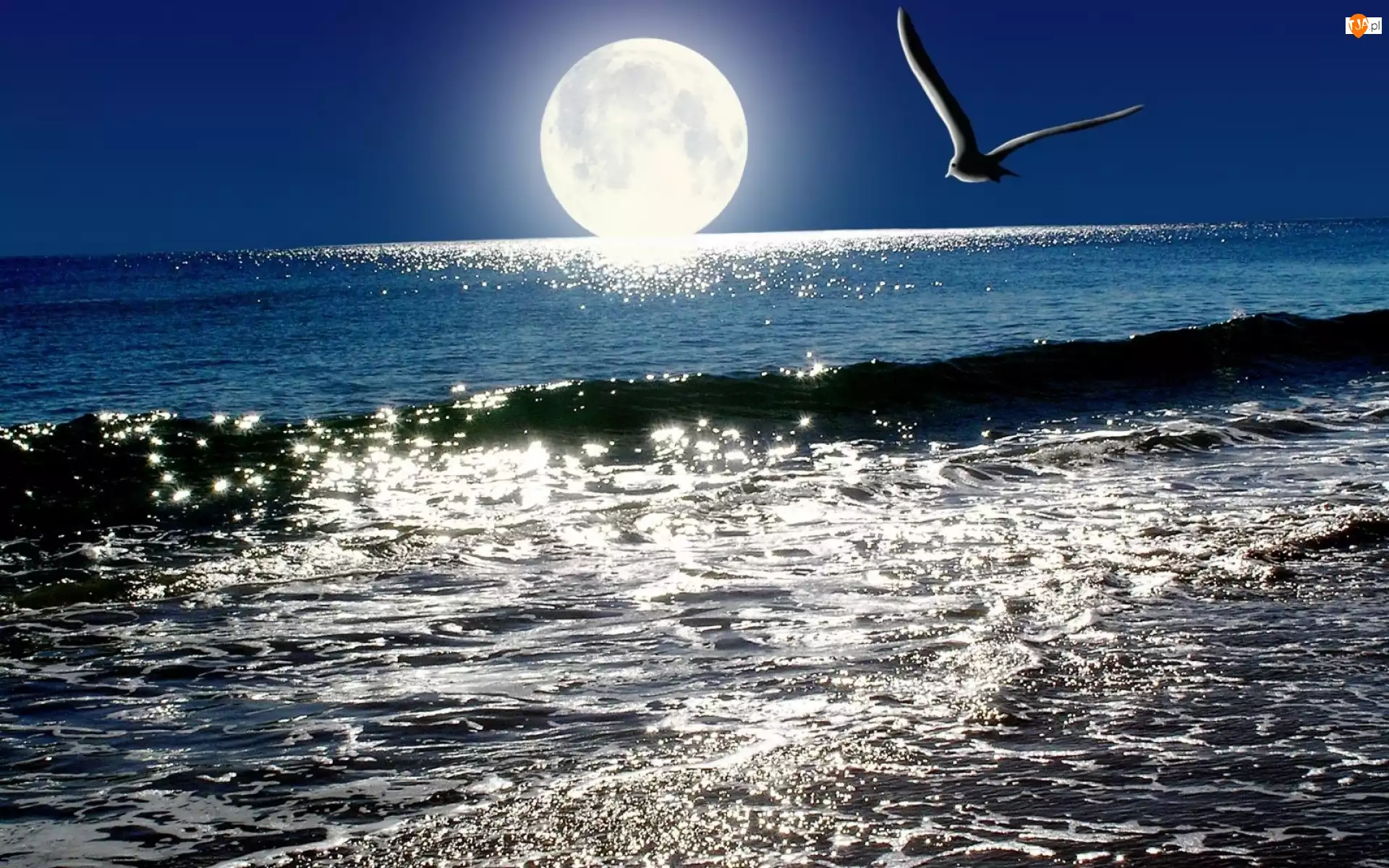 Morze, Noc, Mewa, Księżyc