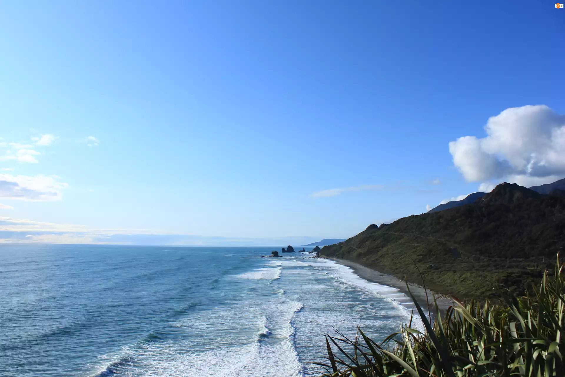 Morze, Wybrzeże, Góry, Nowa Zelandia