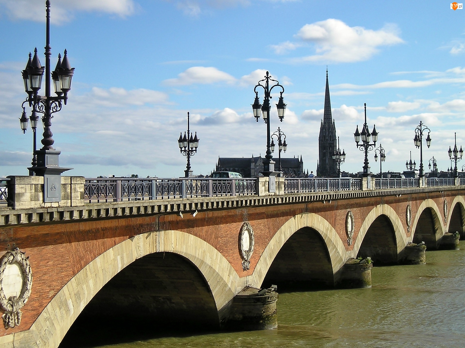 Most, Kościół, Bordeaux, Francja, Rzeka, Latarnie