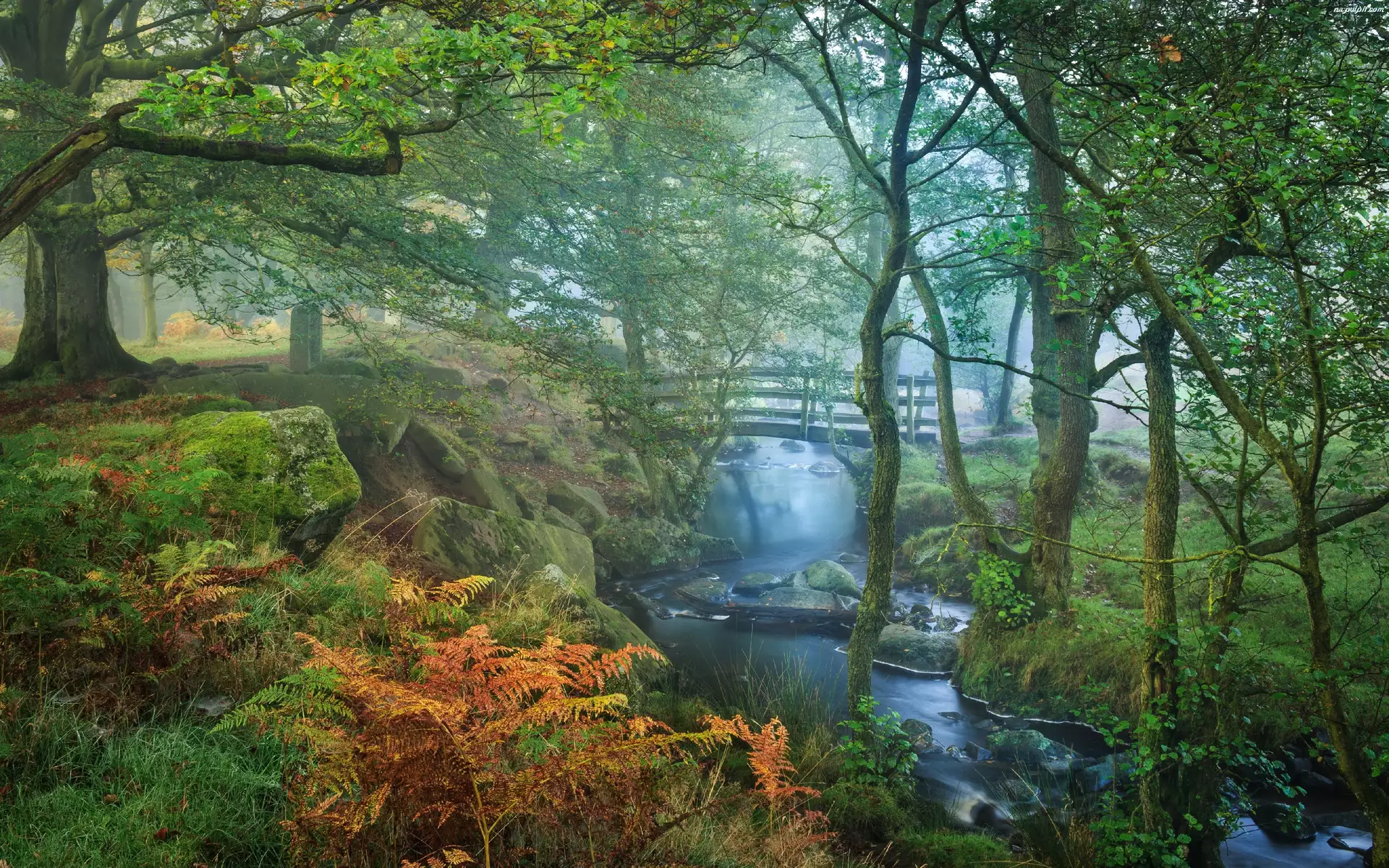 Mostek, Las, Drzewa, Rzeka