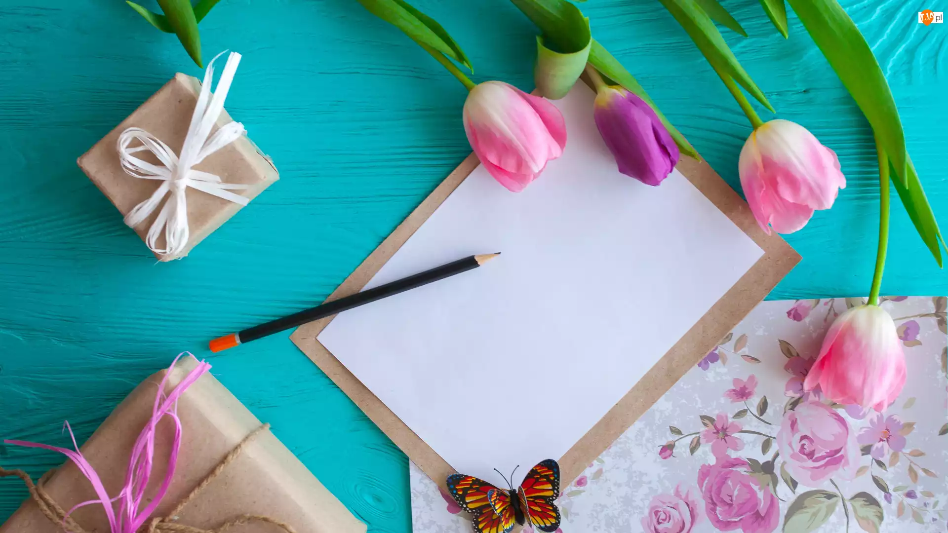 Prezenty, Ołówek Kwiaty, Pudełka, Papier, Opakowane, Tulipany, Motylek, Notes, Kolorowy