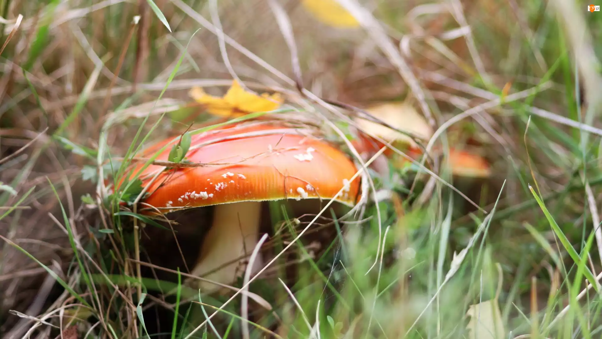 Rozmyte, Liście, Muchomor, Grzyb, Tło, Trawa, Jesień