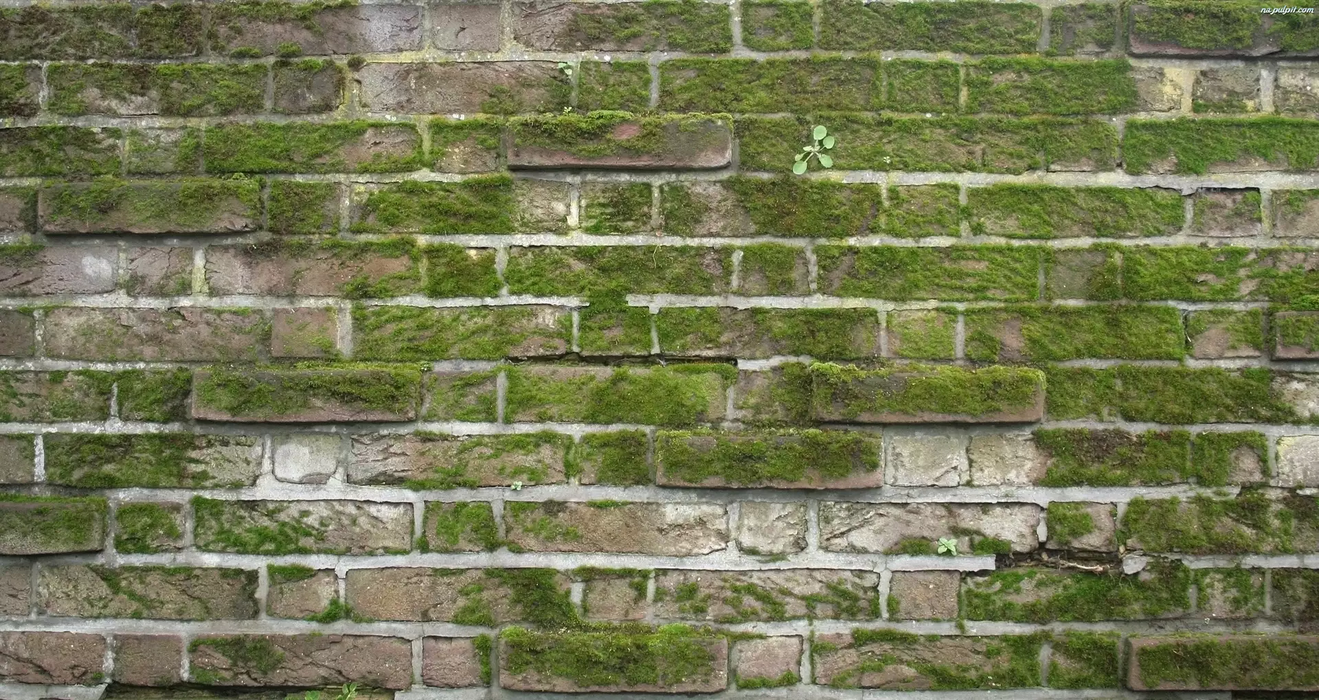 Mur, Tekstura, Cegła, Mech