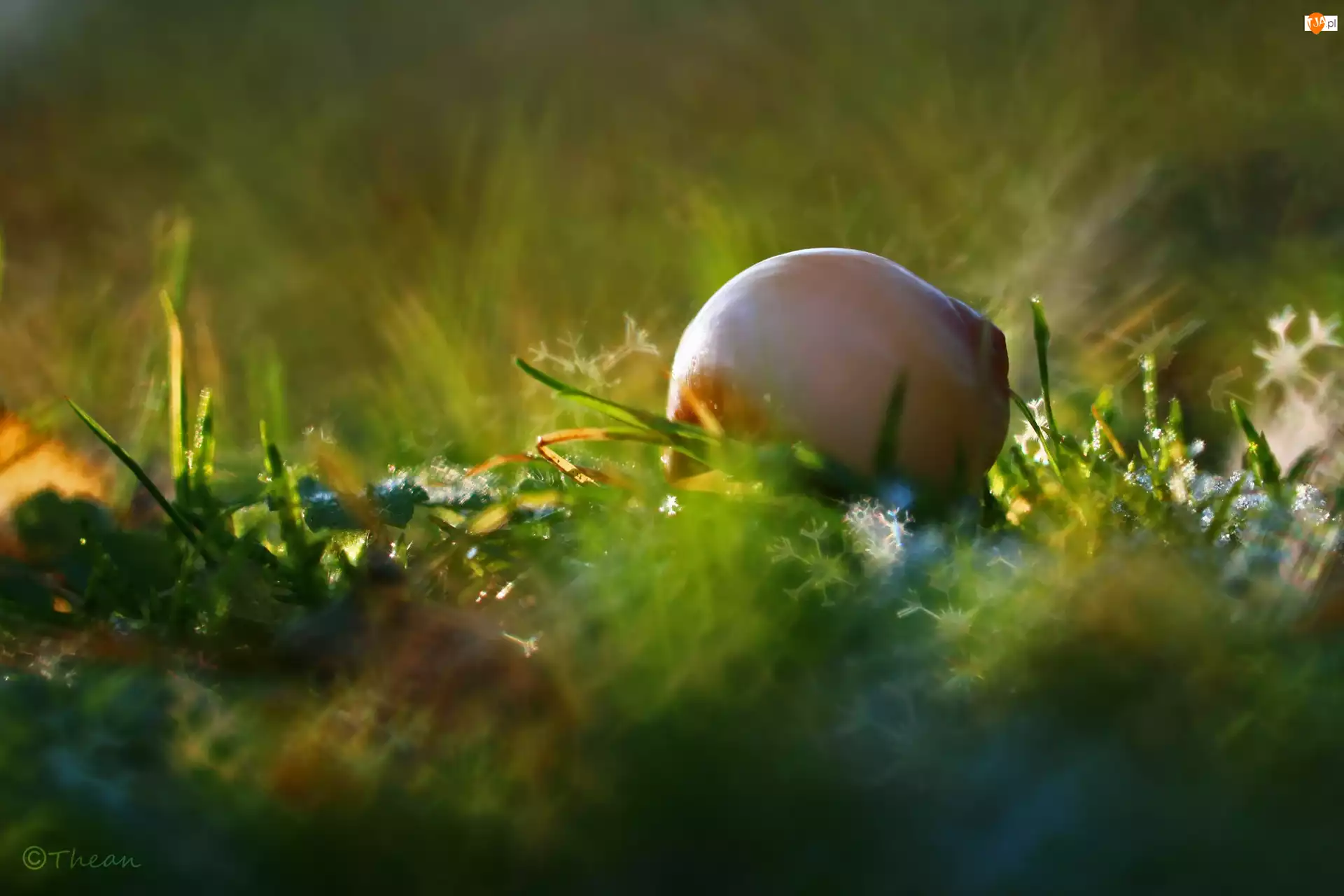 Muszelka, Makro, Trawa, Bokeh