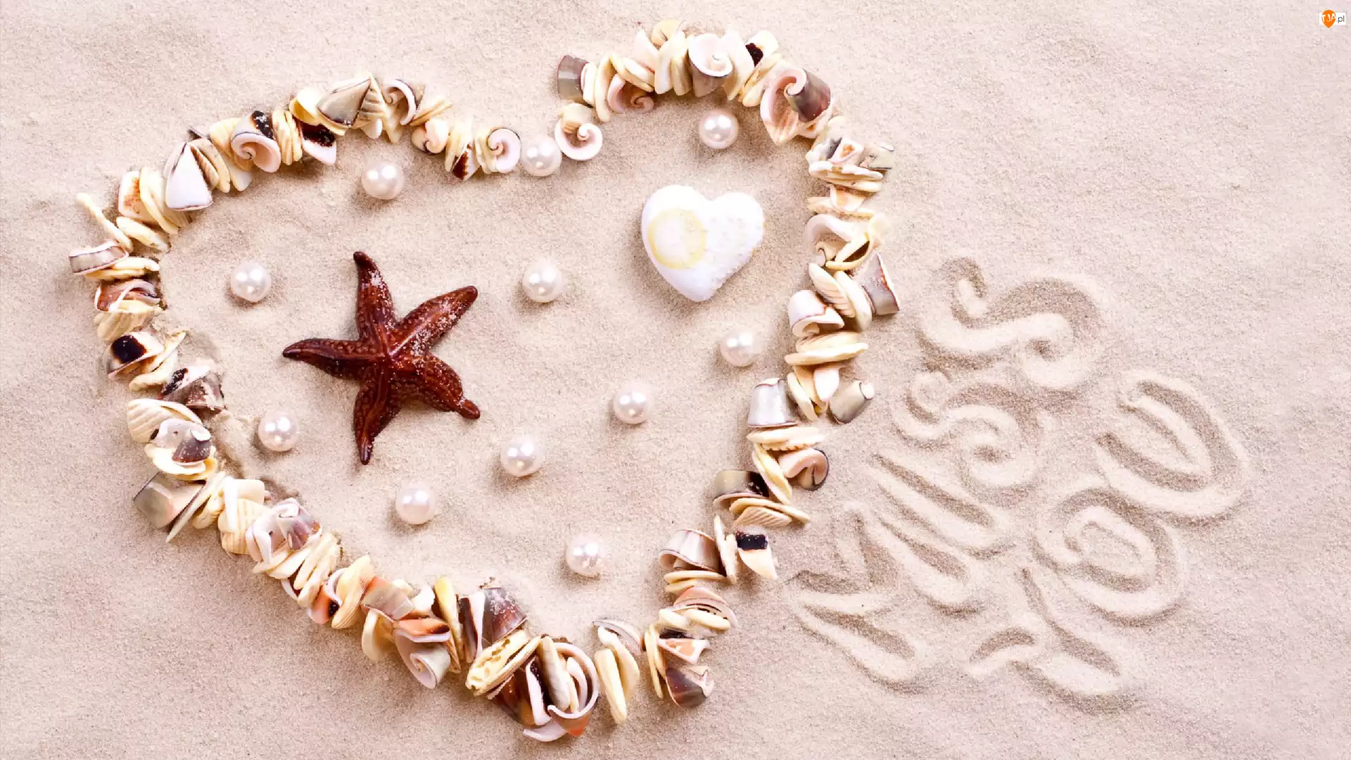 Muszelki, Napis, Piasek, Serce