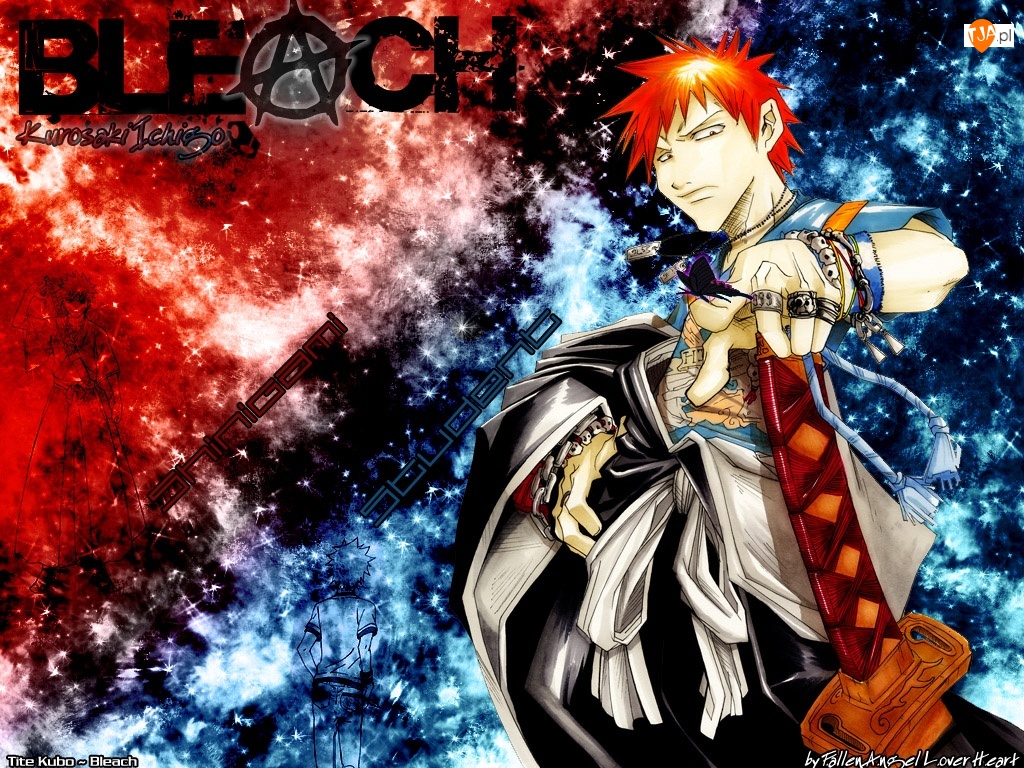 napis, Bleach, sygnety, postać, miecz