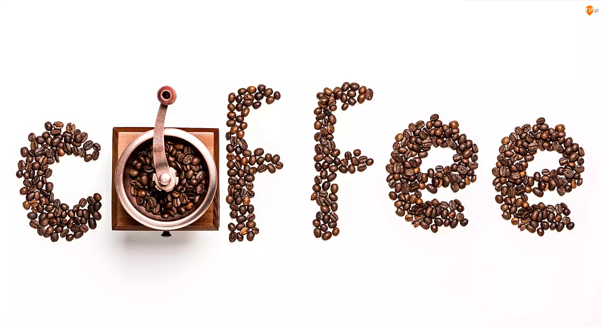 Napis ułożony z ziaren kawy