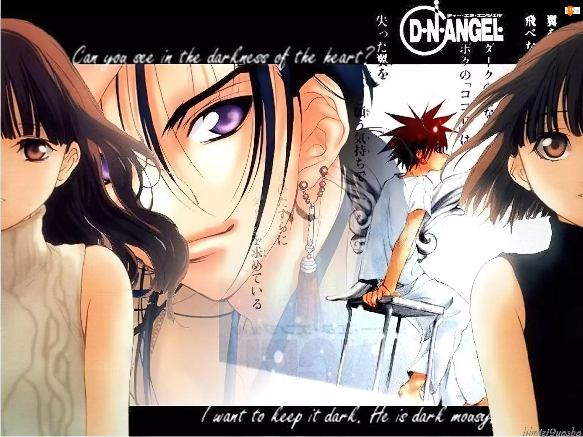 napisy, oczy, D N Angel, taboret, dziewczyny, twar
