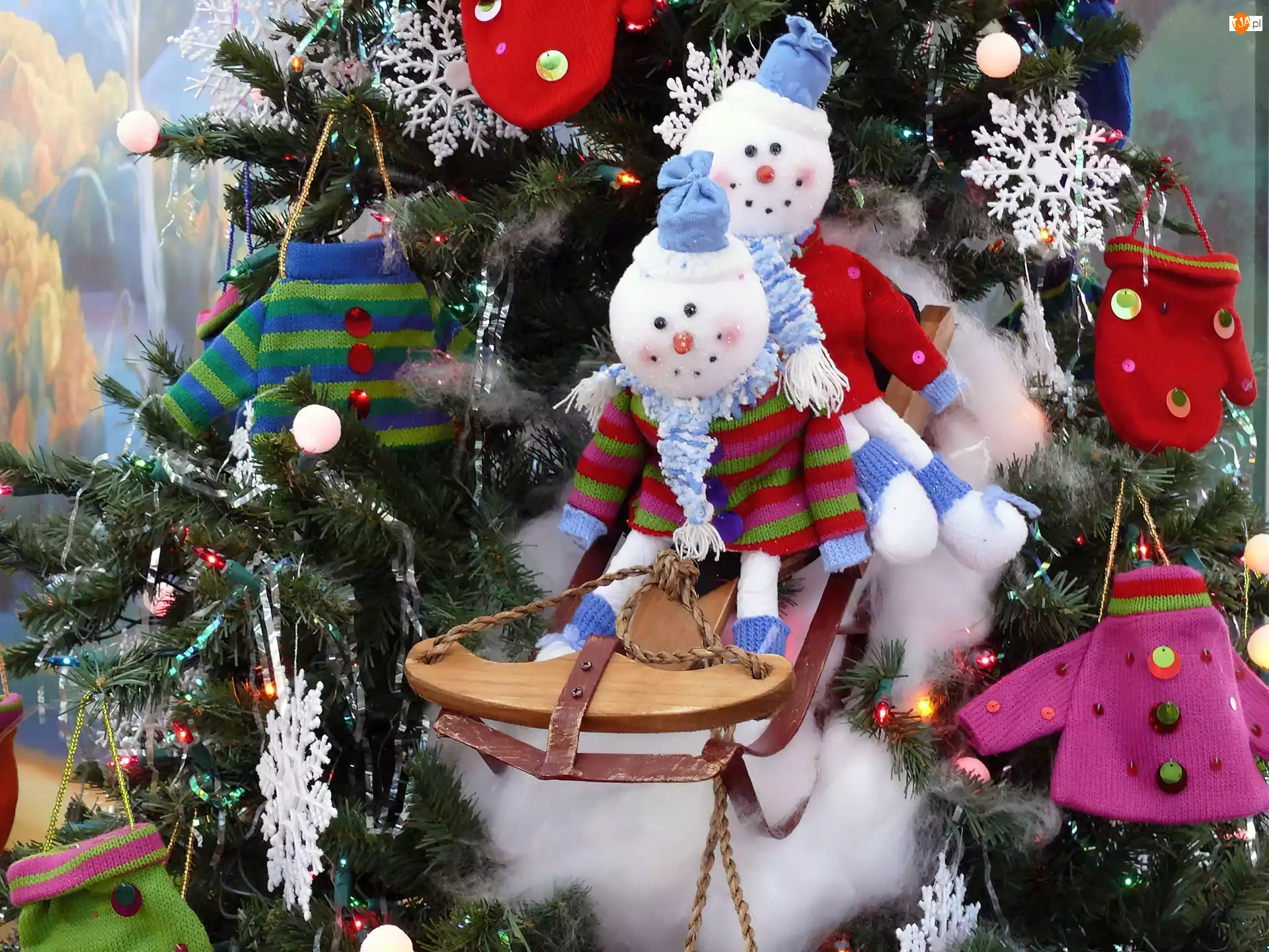 Narodzenie, Bałwanki, Choinka, Sanki, Boże