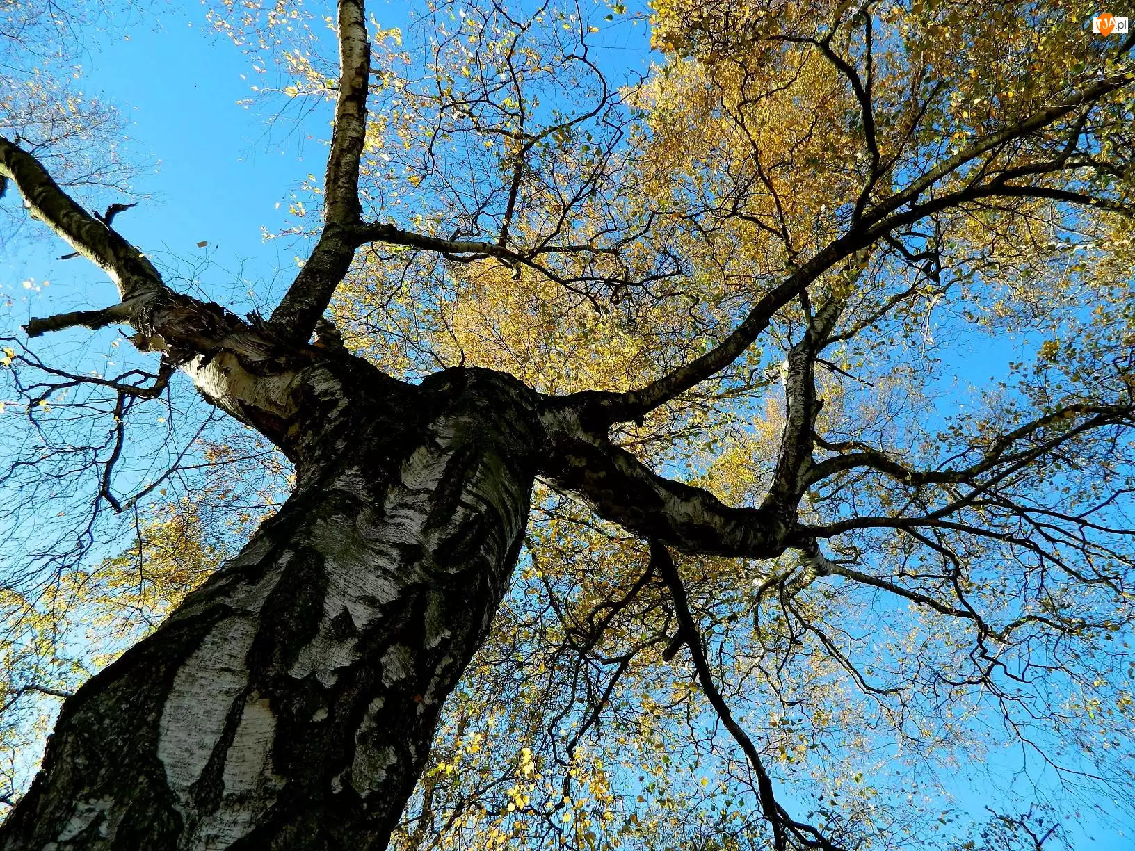 Nieba, Jesień, Liście, Brzoza, Błękit
