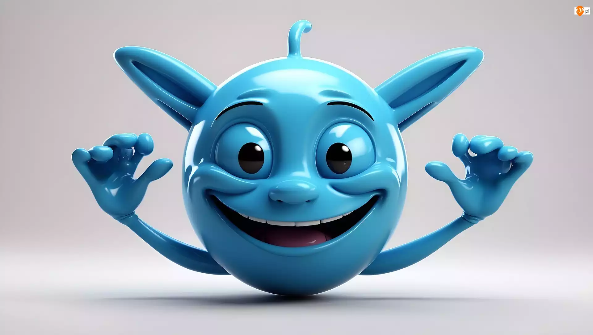 Niebieski stworek z uśmiechem w grafice