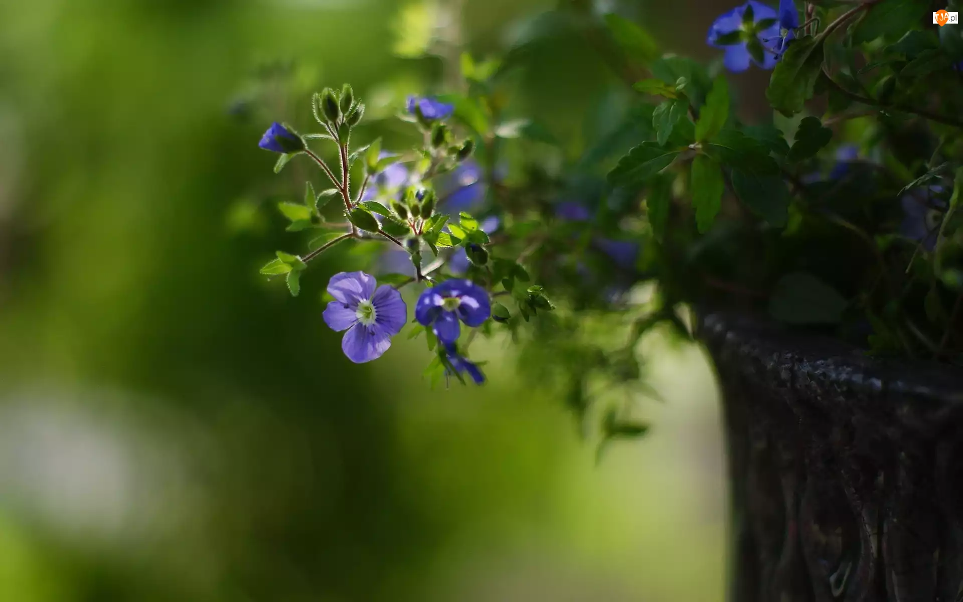 Niebieskie, Park, Kwiatuszki, Donica