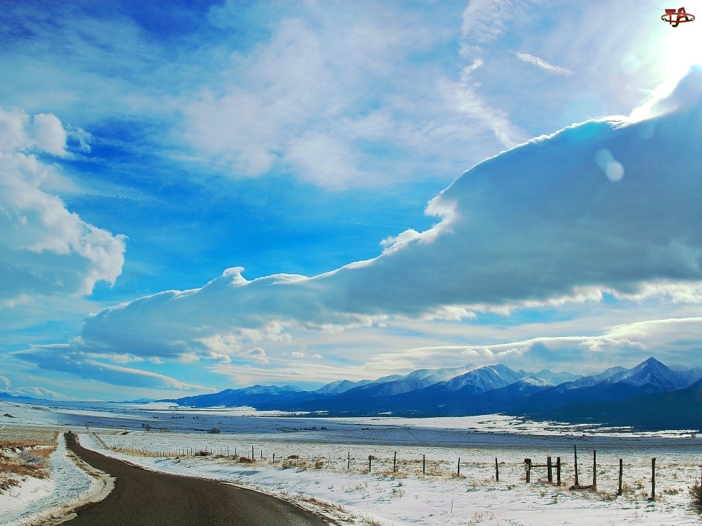 Niebo, Zima, Chmury, Droga