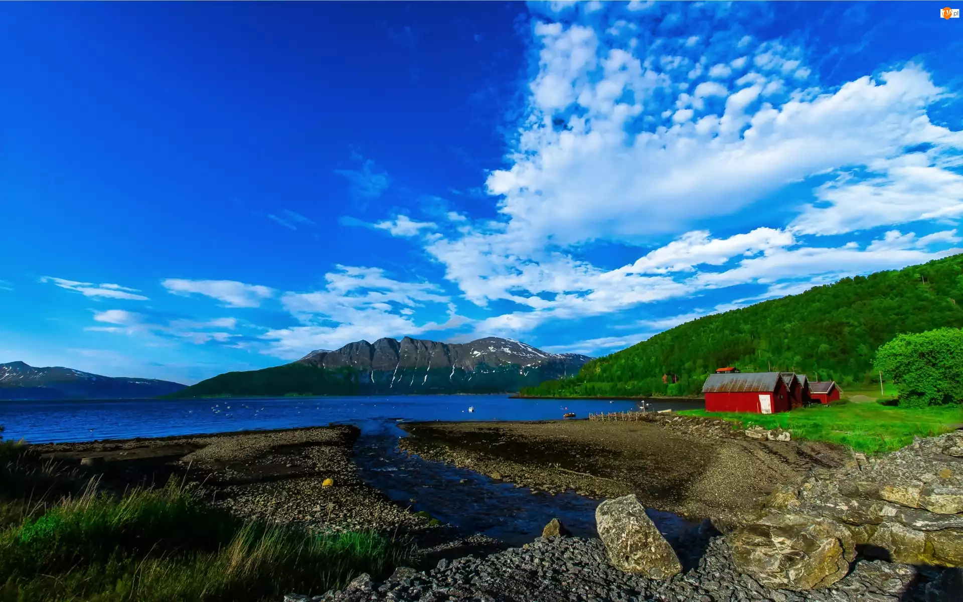 Norwegia, Jezioro, Lasy, Góry, Domy