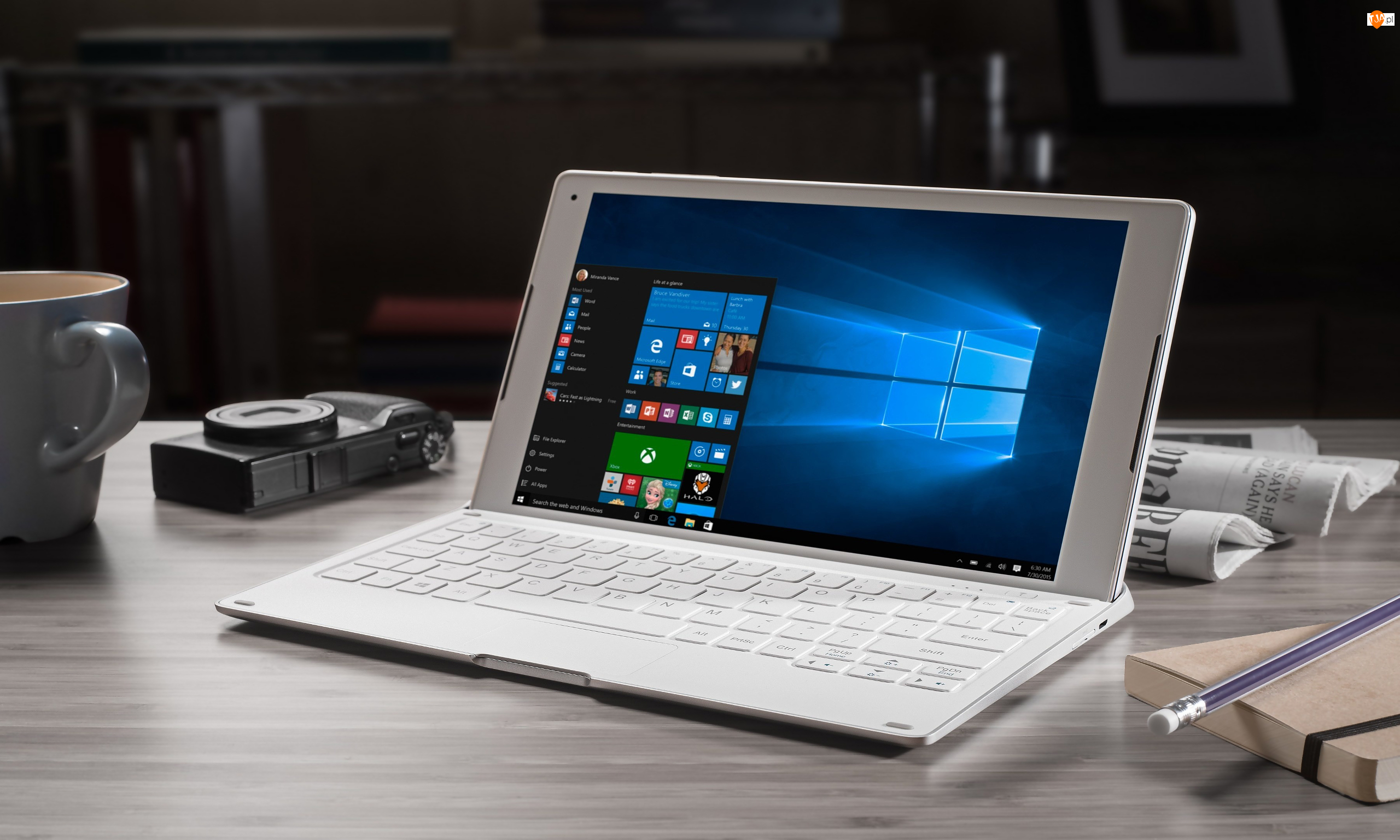 Kubek, Laptop, Blat