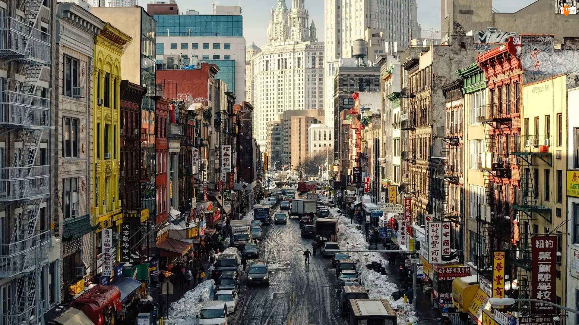 Nowy Jork, Stany Zjednoczone, Domy, Samochody, Chinatown, Ludzie