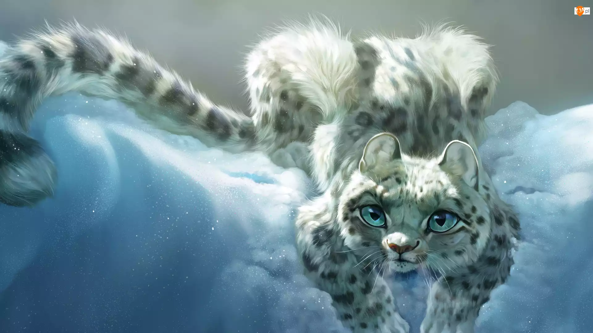 Oczy, Grafika, Niebieskie, Irbis, Śnieg