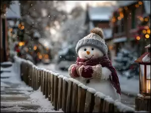 Grafika AI, Bałwan, Płot, Latarenka