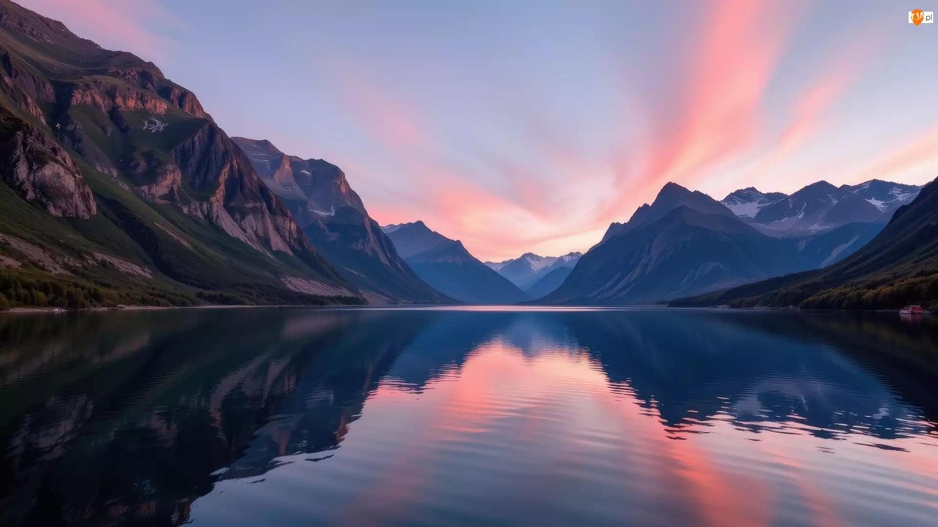 Góry, Jezioro, Niebo, AI, Kolorowe, Odbicie