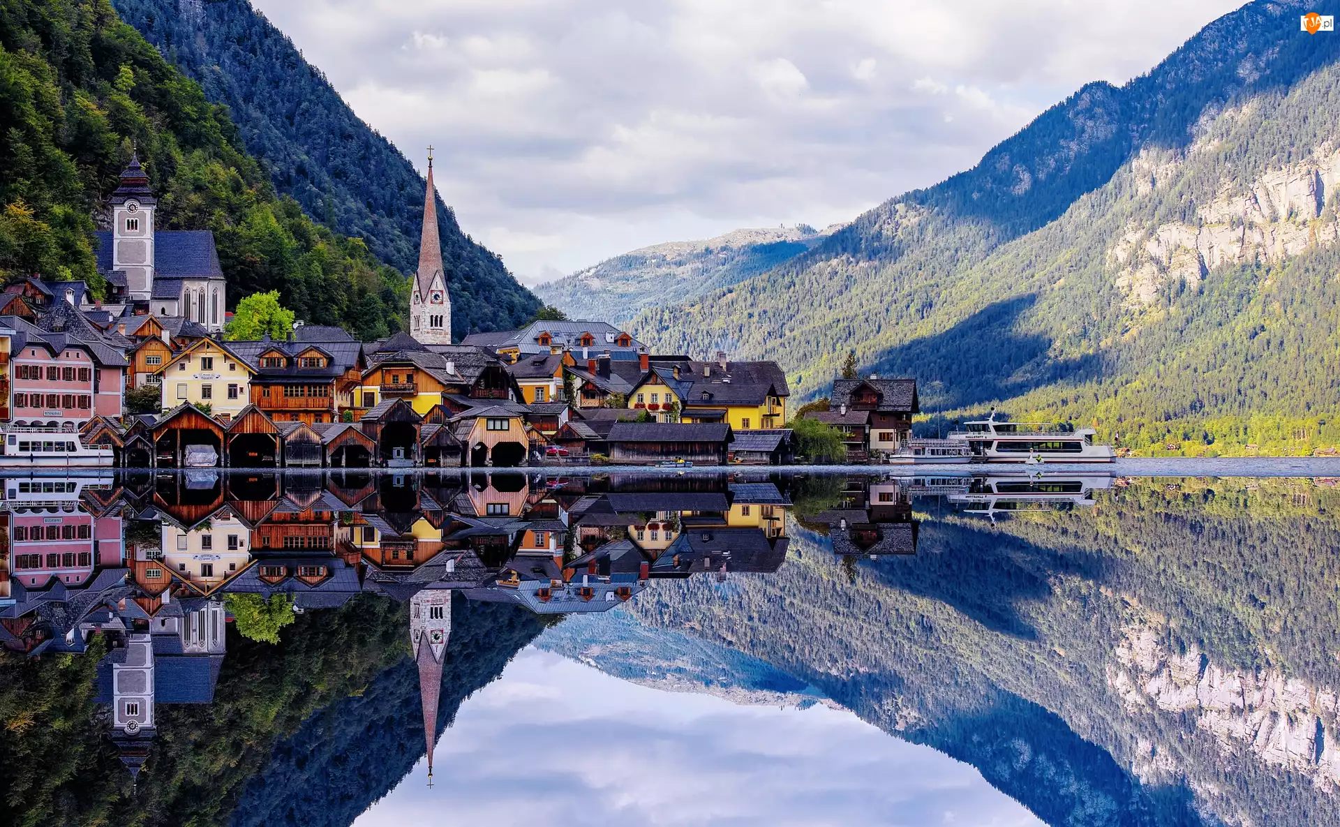 Odbicie, Hallstatt, Jezioro, Austria, Góry Alpy
