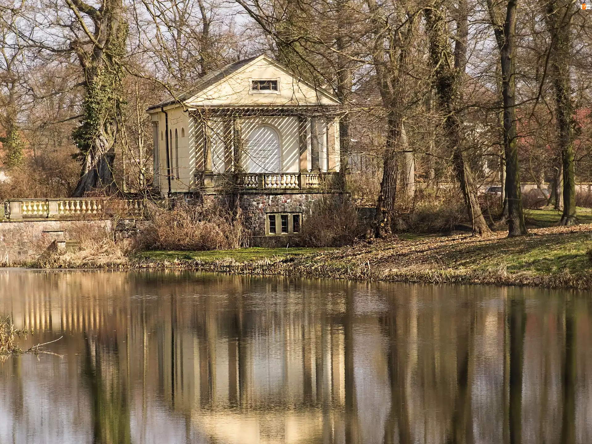 Odbicie, Park, Drzewa, Altana, Jezioro