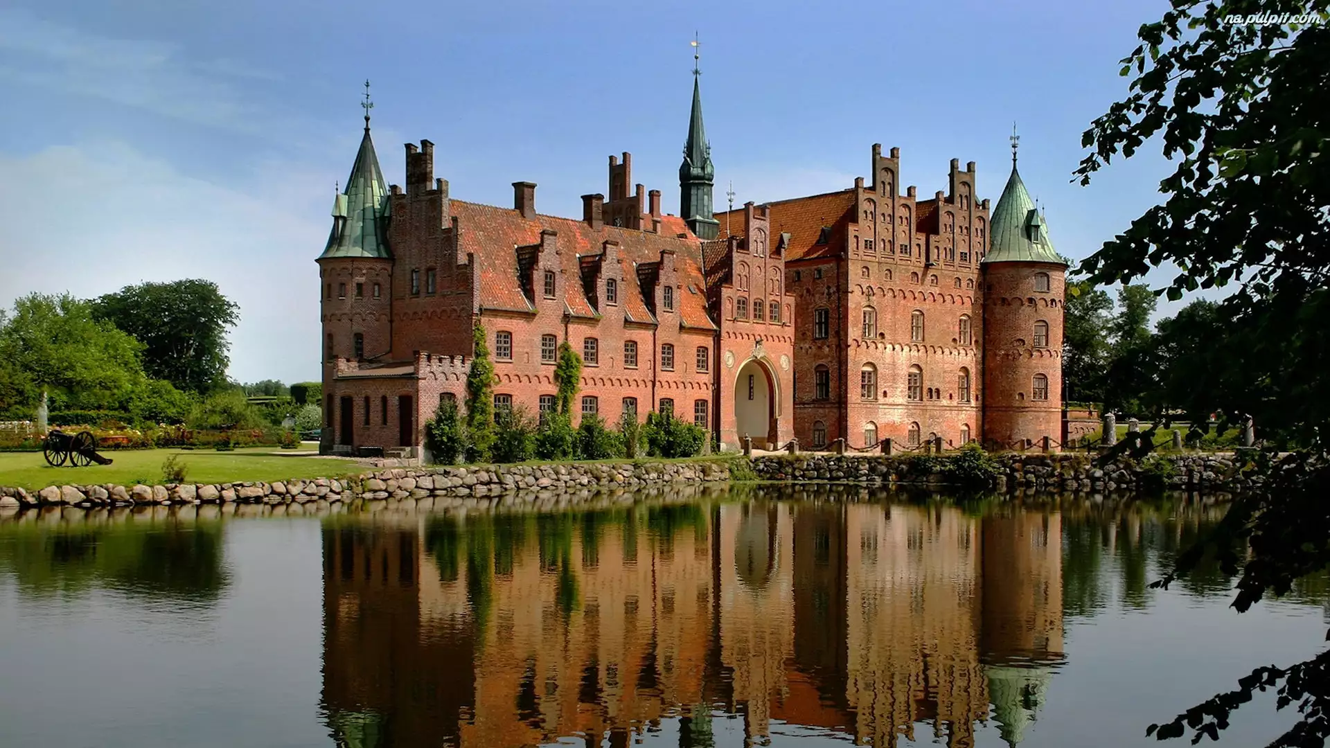 Staw, Zamek Egeskov, Kvaerndrup, Dania, Odbicie, Wyspa Fionia