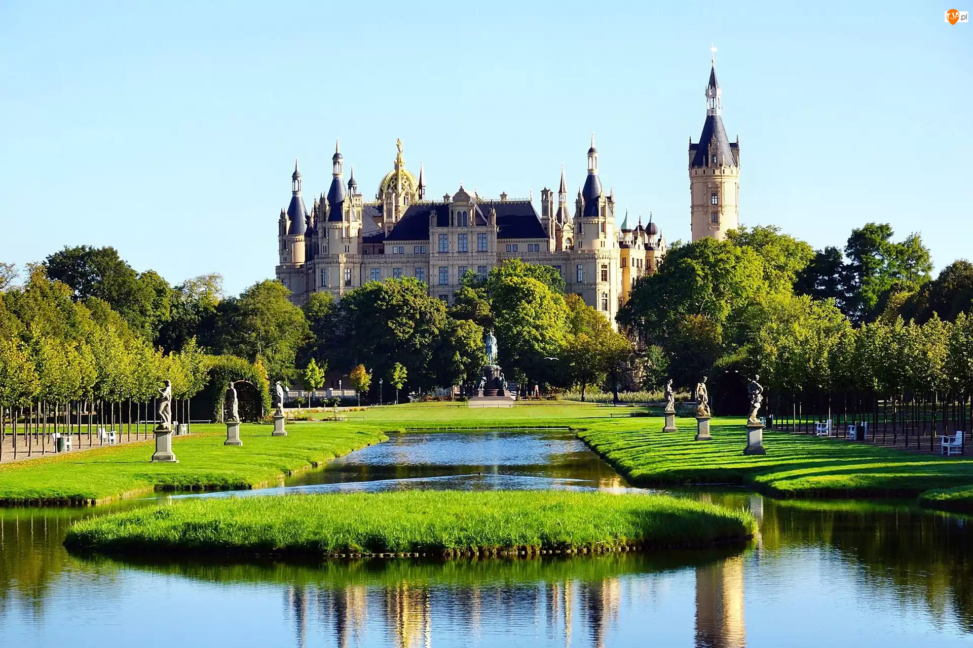 Schweriner Schloss, Niemcy, Posągi, Zamek w Schwerinie, Ogród, Schwerin, Meklemburgia-Pomorze Przednie