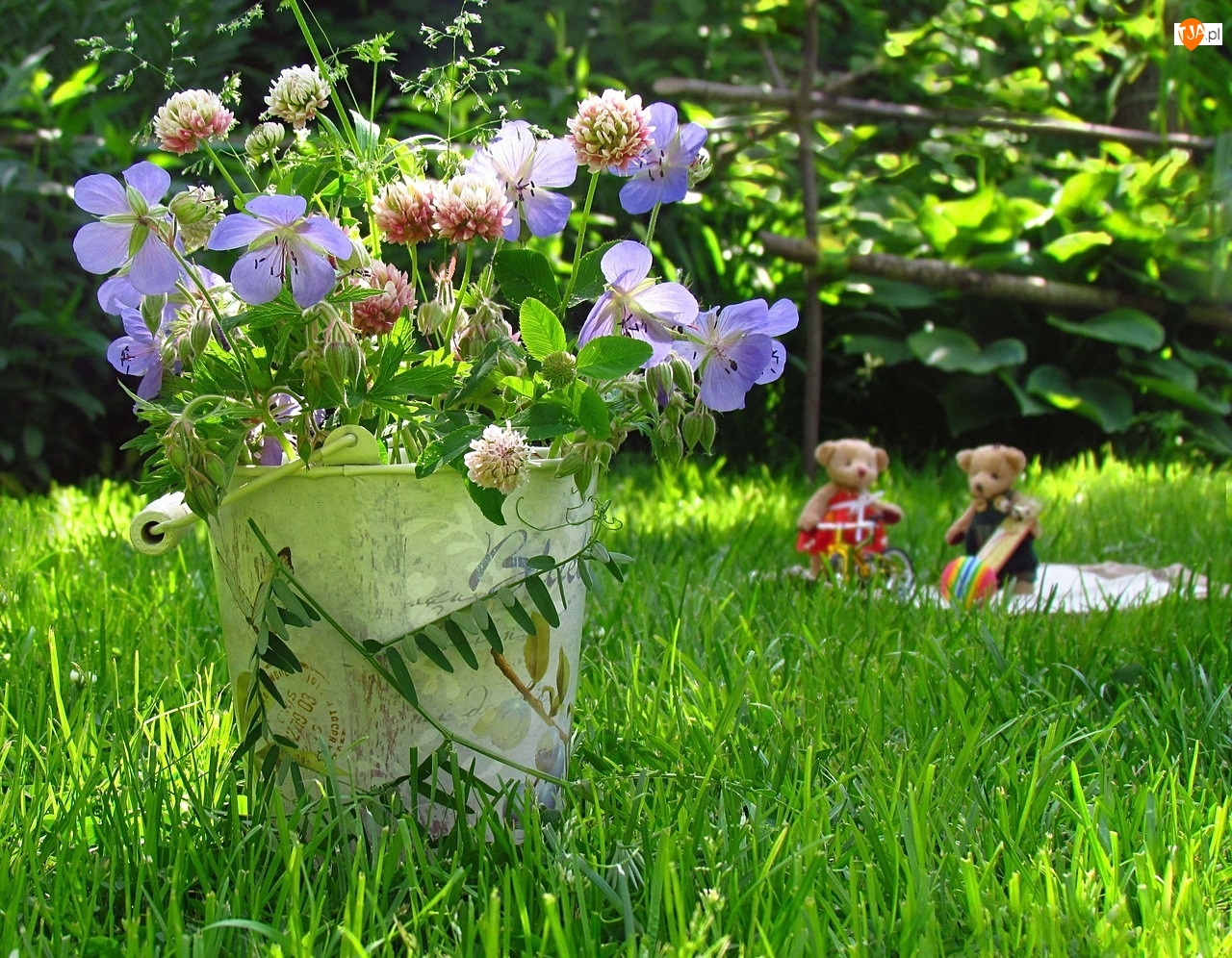 Kwiatów, Ogródek, Polnych, Bukiet, Trawnik