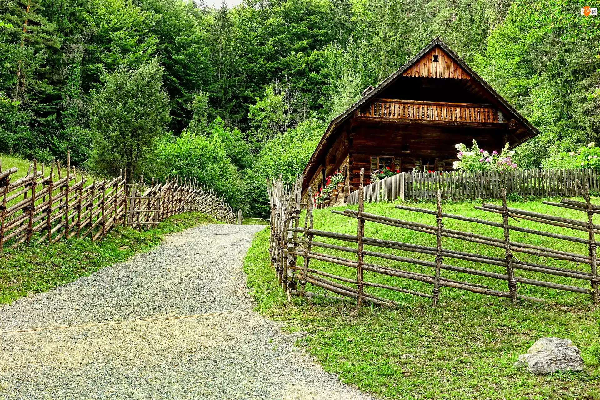 Droga, Las, Dom, Drewniany, Ogrodzenie