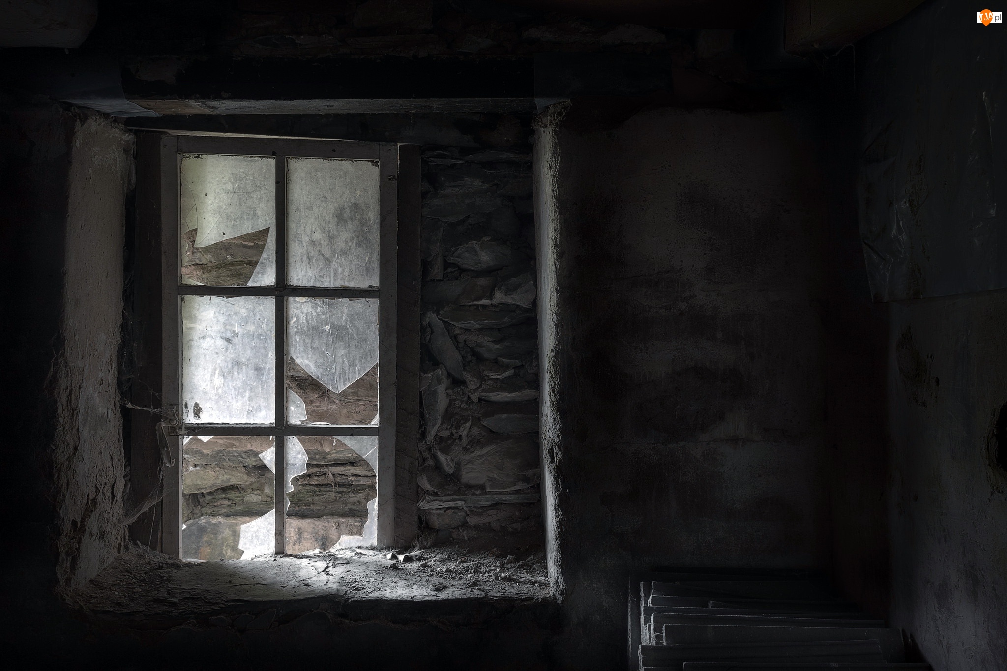 Rozbita, Okno, Zaniedbane, Ściana, Pomieszczenie, Szyba