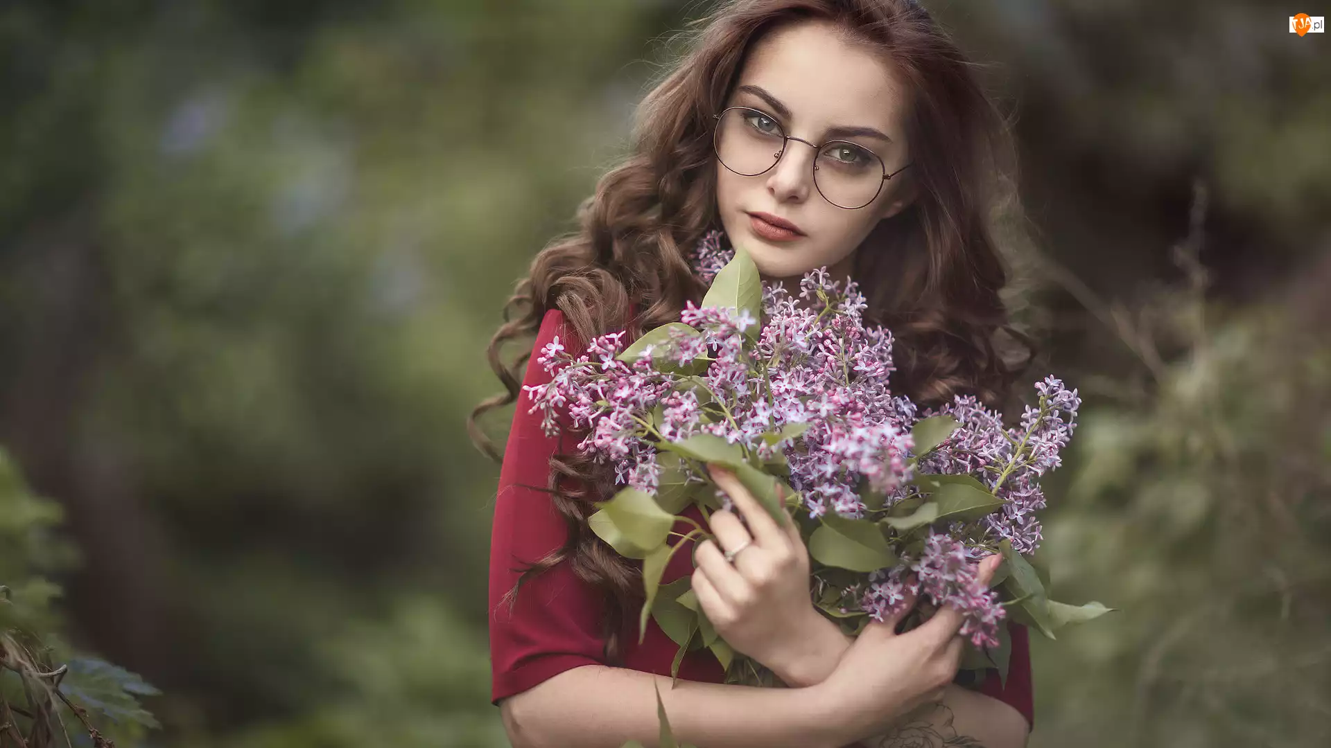 Okulary, Bez, Szatynka, Kobieta, Bukiet