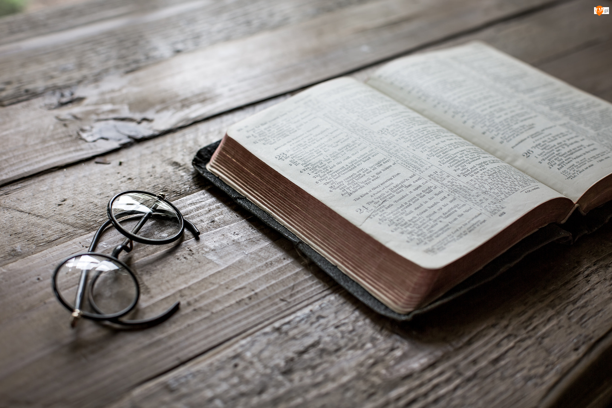 Okulary przy otwartej biblii