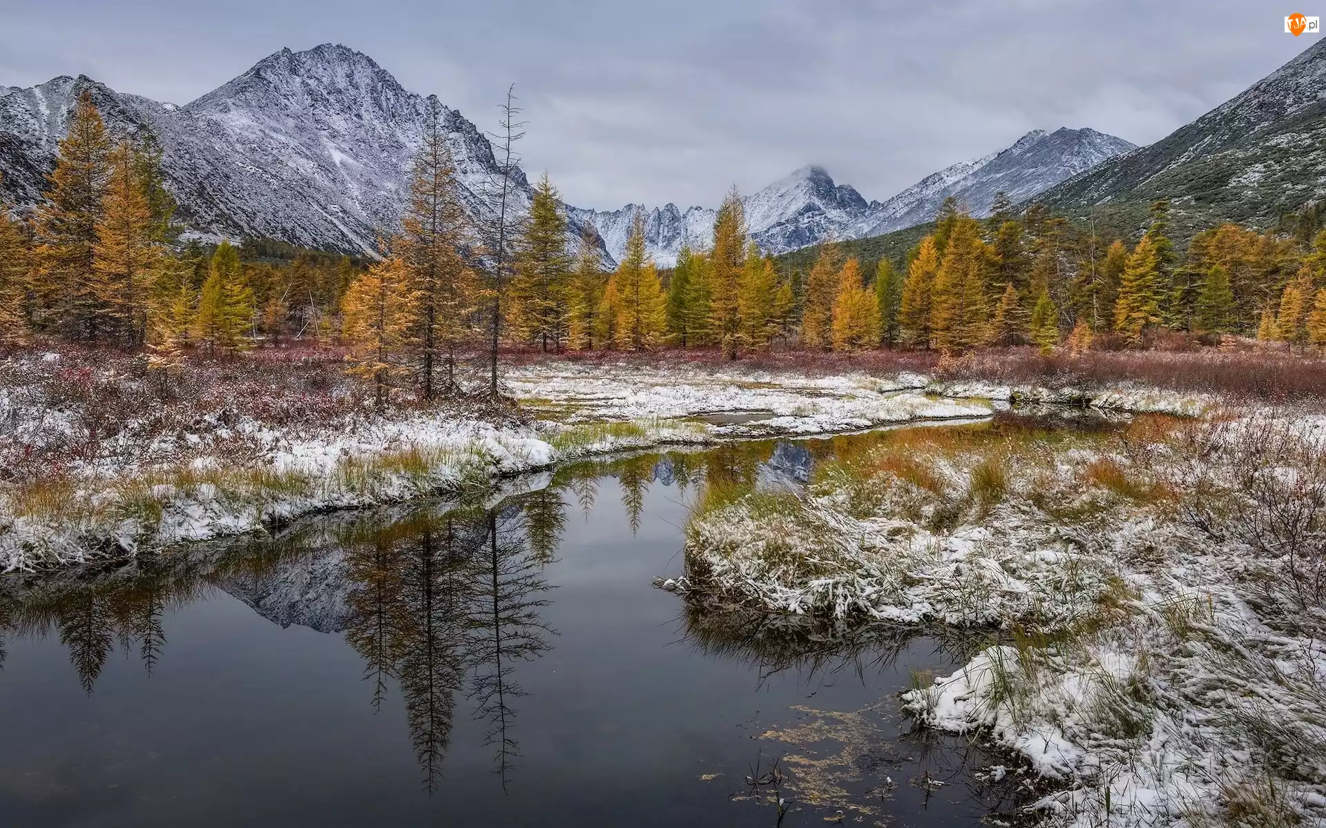 Kołyma, Góry Kołymskie, Drzewa, Magadan, Jezioro, Śnieg, Rosja, Jack London