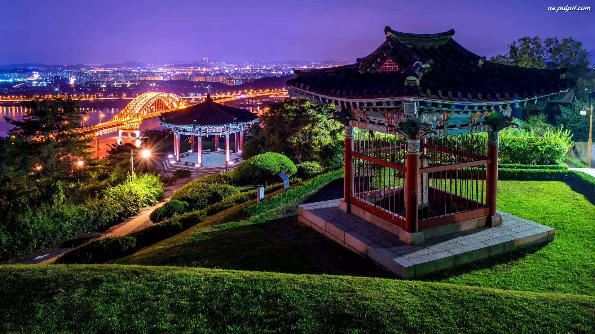 Altany, Oświetlony, Korea Południowa, Park Haengjusanseong, Goyang, Banghwa Bridge, Most